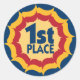 Primeiro lugar Botão Vencedor ou adesivo em vermelho, azul e ouro para um prêmio ou prêmio de concurso. Consulte também os designs correspondentes do ganhador do Segundo Local e do Vencedor do Friso do Terceiro Local na mesma loja.