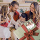 Design de árvore de Natal de inverno em verde e tipografia vermelha em fundo branco com fotos da família desejando um Feliz Natal com nome de família personalizado. Perfeito para compartilhar com sua família e amigos nesta temporada de festas. Personalize seu nome familiar, sua foto e o ano atual.