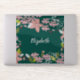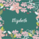 Um fundo verde escuro dispara as flores rosa ilustradas e marrom com folhas brancas e verdes. Um presente perfeito para uma senhora especial de qualquer idade!