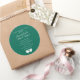 Personalize estes adesivos redondos clássicos com o nome, data ou mensagem desejada. Ótimo para casamentos e outras ocasiões. A cor mostrada é verde esmeralda. Use o modelo para criar seus próprios adesivos de casamento.