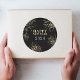 Este adesivo feliz ano novo preto e dourado apresenta uma ilustração moderna, elegante e elegante, completa com fogos de artifício proeminentes.