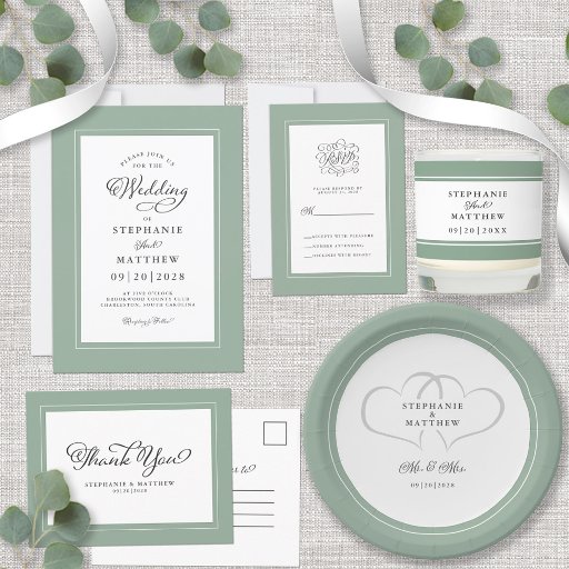 Sage Green Elegant Wedding Chic Border Criado por Ann Richmond