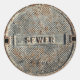 Um metal, provavelmente aço, cobrir de esgoto numa rua. Tampas divertidas para colocar em qualquer lugar e em qualquer lugar! Trabalhadores da construção, manutenção, trabalhadores da estrada, se divirtam colocando isso em lugares estranhos aleatórios no trabalho! Veja mais designs de Construção e esgoto em nossa loja.