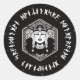 Escudo viking solteira vestindo pelo e capacete corado em fundo Nó Celta. Excelente para o fã do viking History.