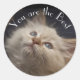 Um gatinho branco de olhos azuis, fofo e adorável está olhando para cima para a afirmação "Você é o Melhor". Adicione um pensamento positivo ao dia de alguém com o adesivo mais bonito.