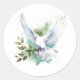 O adesivo redondo é mostrado com uma impressão espiritual de cor d'água da pomba. Tamanho pequeno mostrado Personalizar este item ou comprar como está. Imagem licenciada