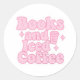 Escrevendo rosa bonito dizendo livros e café gelado.