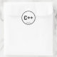 C++ Sticker, redondo/matte. Design preto em branco.