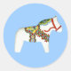 A design deste adesivo é de um cavalo de madeira esculpido, desenhado e pintado por Julia Morrill