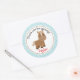 Etiquetas brancas com design de cavalo (animal Fazenda) em fundo azul de damas.