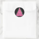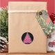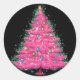 Adicione um toque de charme festivo aos seus presentes ou decoração com este adesivo circular com uma árvore de Natal rosa sobre um fundo preto elegante. Perfeito por adicionar uma reviravolta única e moderna à sua época de férias.