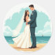 Inclui 20 pequenos adesivos numa única folha. Um adesivo de casamento Whimsical com um casal na praia, perfeito para adicionar um toque romântico a qualquer presente ou decoração.