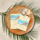 Belos adesivos de casamento de ondas de oceano azul. Várias formas e tamanhos disponíveis.