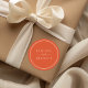 Torne o seu dia de casamento exclusivamente o seu com o nosso adesivo comum em laranja e branco, mínimo, com tipografia moderna única. Isto é perfeito para um selo de convite de casamento, uma bolsa de promoção ou uma etiqueta de presente. Personalize seu texto para um na moda adicional ao seu casamento e facilmente impressão com Zazzle!