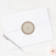 Um na moda e um adesivo moderno com um dólar de areia sobre uma imagem de fundo da burlap. Procure por convites de casamento e mais na Paperie da Jill.