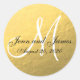 Dourado Casamento Preto Favor Vinheta de Favor de Noiva Inicial ou Vedante de Envelope de Casamento. Totalmente personalizável. Elke Clarke© para MonogramaGallery no Zazzle. Outras cores disponíveis em nossa loja. Foto impressa da folha de ouro em segundo plano, com um monograma branco e texto preto. Perfeito para um tema de casamento preto e ouro.