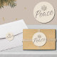 Adicione um toque de elegância às suas mensagens de férias e pacotes com este belo adesivo redondo. O fundo leve é enfeitado com um floco de neve de ouro de champanhe escovado no topo, simbolizando a beleza serena da estação. Abaixo dela, a palavra "Paz" é delicadamente escrita em letra suave, capturando o espírito de tranquilidade e boa vontade. Perfeito por adicionar um toque sincero às suas saudações festivas, estes adesivos são uma forma charmosa de espalhar alegria e calor nesta época de férias. Use-os para selar envelopes, decorar a capa de presente ou adorar favores de feriado. Elevem sua apresentação de feriado com este design cativante e significativo.