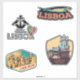 Um presente de excelente para todos os amantes de Lisboa ideais para colocar na sua bagagem/mochila/mala/picape/RV/airstream/viagem trailer/autohome/ou em qualquer outro lugar, crachá retrô com várias ilustrações e símbolos de Lisboa Portugal