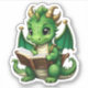 Um Dragão lendo um livro. Crianças adoram criaturas e criaturas!! Ler é um dever para as crianças!! Recompensa-os com um adesivo!! Esta imagem tem conteúdo generativo.