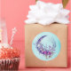 Esta design apresenta uma lua roxa brilhante e colorida com flores. Ele pode ser personalizado com texto se você escolher, e o plano de fundo pode ser alterado.