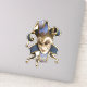 Vinheta-vinil com a imagem de uma máscara de coroa azul-veneziana e púrpura com uma trim-a-brac-dourada, campainhas de ouro, pérolas e um design floral azul-e-dourado adorável à volta dos olhos. Veja toda a coleção do Mardi Gras Sticker nos CONVITES | Seção Stickers & Labels