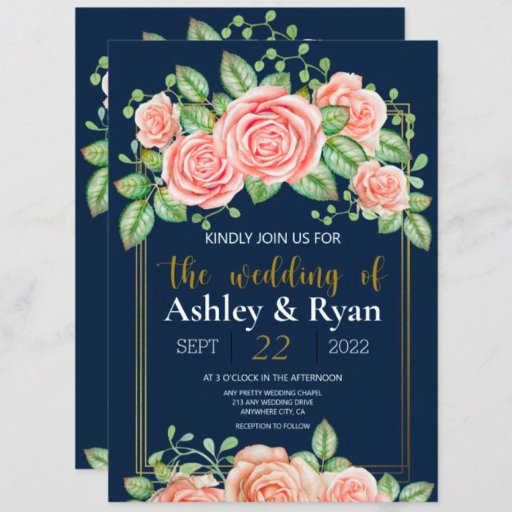 Navy Blue Gold Blush Floral Wedding Criado por Gor Tet