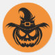 Este malvado rosto de abóbora com um chapéu de bruxa é perfeito para a decoração do Halloween.