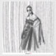 Esta é uma ilustração na moda a preto-e-branco que apresenta uma mulher envenenada num vestido dramático, fora do ombro, com embelezamentos florais intrincados e uma capa brilhante e fluente. O fundo tem uma textura vertical impressionante, acrescentando uma sensação de profundidade e movimento