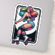 Este adesivo ousado e vibrante de arte digital apresenta uma moça retrorreflectora em skates de rolo, estilizada com talento de vintage e atitude moderna. Adorada com tatuagens coloridas e uma pose confiante, essa beleza de patinação em rolos traz a arte pinup clássica dos anos 1950 para o século 21rua. Perfeito para decorar laptop, garrafas d'água, skates ou revistas, este adesivo de alta resolução é um imperativo para ventiladores de estética de alfinetes, cultura derby de roleta e arte de tatuagem.