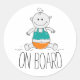 Um adesivo do ícone do bebê no conselho, do designer Brad Hines.