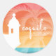 Etiqueta de coquito de Porto Rico com palmeiras em fundo verde.