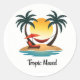 Adicione a paz ao seu laptop, garrafa ou notebook com este 🧘 pegador tropical tranquilo 🌅. Apresentando palmeiras minimalistas, uma rede, e um sol laranja brilhante, este design de vetor retrorreflector limpo traz vibrações insulares em todos os lugares.