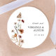 Este na moda e elegante obrigado de casamento que você enveloz o adesivo redondo clássico do selo contém lindas flores de aquarela pintadas manualmente organizadas como um buquê adorável perfeito para primavera, verão ou casamentos outono. Encontre itens correspondentes na Coleção de Casamentos de Flores Selvagens de Branca.