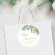 Este adesivo festivo é decorado com folhagem de cor vermelha, verde e dourada e diz Feliz Natal em tipografia de guião. Facilmente personalizável. Original Watercolor © Michele Davies.