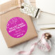 É a última jogada antes do anel celebrar no estilo e juntar as garotas com este festa de solteira divertido. Uma fileira de luzes cintilantes pendura do topo deste adesivo redondo com o texto "O último fling antes do anel!" embaixo. Adicione um nome, evento, função de festa de casamento ou qualquer outra informação sobre o fundo rosa do fuchsia. Disponível em cores alternativas com produtos correspondentes. com