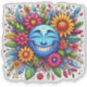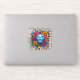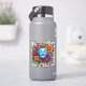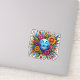 Uma coleção vibrante de adesivos se rompe com cores, mostrando uma lua azul alegre cercada por um conjunto de flores e folhas verdes e exuberantes. O design captura um espírito lúdico, perfeito para iluminar notas, letras ou mensagens digitais.