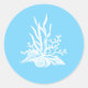 Adoráveis adesivos de envelope de casamento, com gráficos de conchas brancas e corais, em um fundo azul claro. É uma maneira maravilhosa de terminar o seu convite de casamento para o seu casamento na praia.
