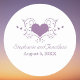 Simples, mas elegante, design de Vestido Cardíaco Flourado em roxo, com um grande coração decorado com cascatas de florescimento e pontos flanqueados por corações brancos menores. Estes adesivos de casamento de na moda estabelecem o tom para um caso sofisticado. Fácil de personalizar, basta adicionar os detalhes do dia do casamento nos campos fornecidos. Clique no botão "Personalizar a TI" para encontrar opções adicionais de personalização.