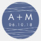 Personalize estas simples focas com as suas iniciais e data do casamento para uma forma chic de terminar os seus convites, favores e muito mais. Design apresenta uma inscrição branca clara sobre um fundo azul escuro riscado com linhas geométricas brancas. Projetado para combinar com nossa coleção de convite de casamento Lineation em Steel Blue.