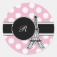 Os autocolantes cor-de-rosa, redondos, com bolinhas e a Torre Eiffel, dando-vos um gosto pela França. Adicione o seu nome ou as iniciais que este adesivo e na moda fazem parte da Coleção de Paris Rosa.