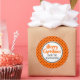 Etiquetas de presentes de férias com um fundo de bolinhas cor de laranja e preto. A saudação de "Feliz Natal" e de quem ela é pode ser mudada.