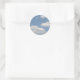 Esta folha de autocolantes redondos apresenta uma fotografia de algumas nuvens brancas fluffy acumulus flutuando livremente através de um belo céu azul.