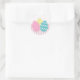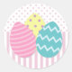 Esta design apresenta três ovos coloridos de Páscoa em uma bolinhas rosa e fundo de faixa. Use esses adesivos com nossas placas de "Felz pascoa" disponíveis na seção Feriados e Eventos de nossa galeria.