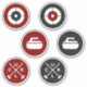 Apenas adesivos com rochas, vassouras e casas em vermelho e carvão. Perfeito para curtidores e ventiladores.
