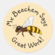 Uma abelha de mel de banda desenhada num fundo bronzeado. O texto diz "Mx Beechem Says Excelente Work!" e pode ser alterado para um nome/mensagem personalizado. Ideal para professores como recompensas para estudantes.