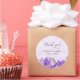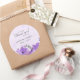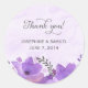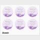 Adesivos personalizados com design de flores roxas e fundo de aquarela.