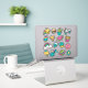 vinil com ilustrações bonitas. Estas designs engraçadas dos anos oitenta são de itens bonitos e comidas com rostos como skates, cupcakes, pizza, planetas, flores e muitos outros.