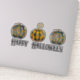 Decal de vinil do Halloween divertido apresenta ilustração aquosa de abóboras decoradas com rico com texto personalizável.