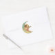 Um design de vintage de um anjo que repousa numa lua em forma de crescente.