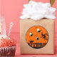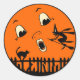 Excelente vintage arte de Halloween - uma bruxa voando em frente a uma lua de cheio com um gato preto no rosto.